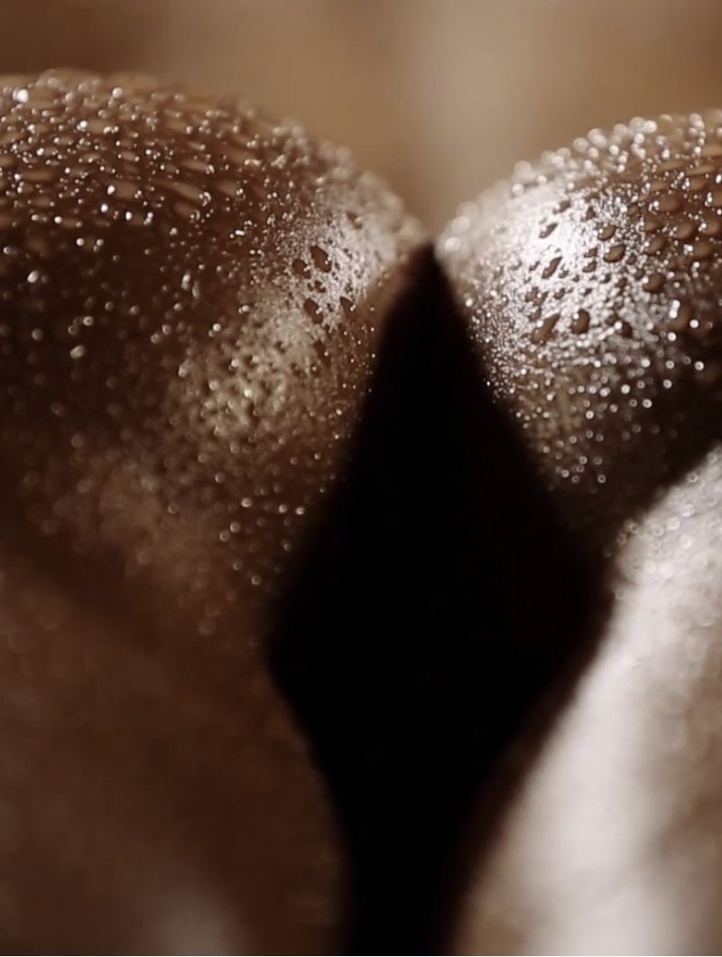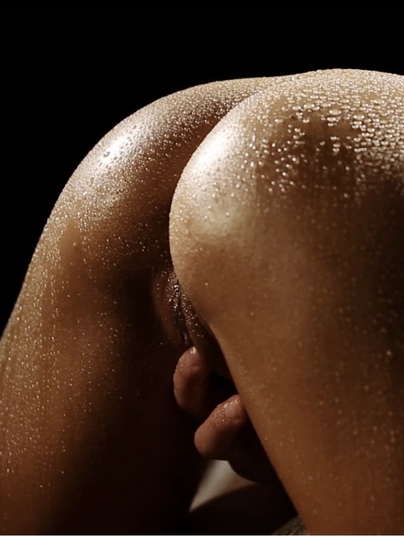The theme of light touch continues even during oral. As Keira hovers above him, Chriss uses just the tip of his tongue (and later his fingers) to pleasure her. (6:56)